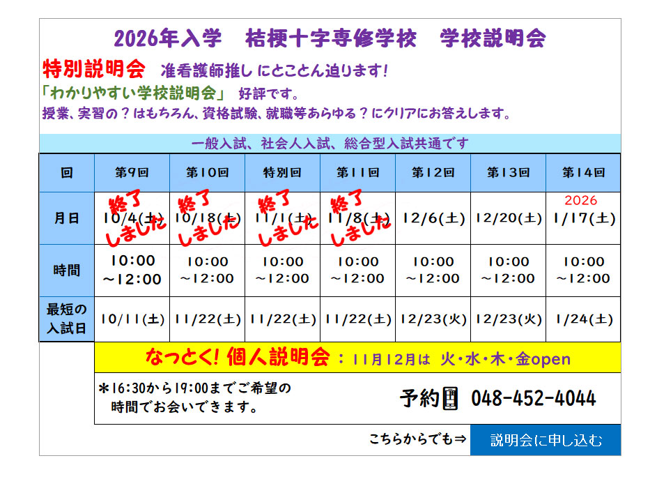 説明会に参加できない方は、随時個別相談受け付けていますので、お気軽にお問い合わせ下さい。